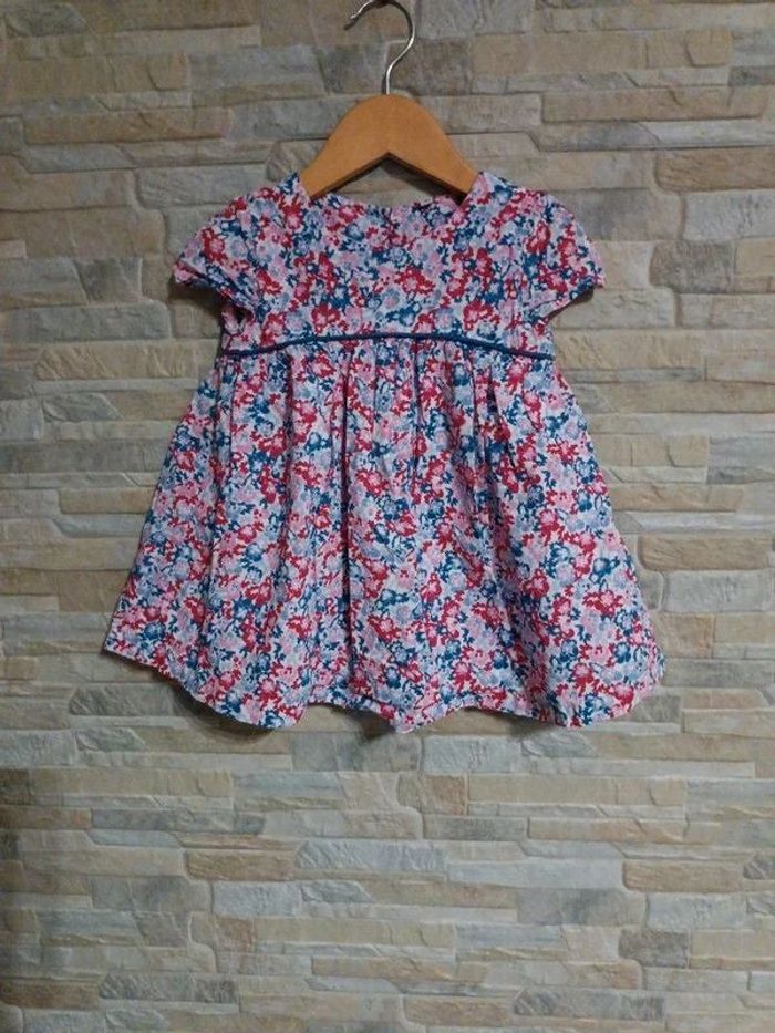 Robe à fleurs rose/bleu 18M, fermeture dos 3 boutons, doublée, 100% coton. TBE