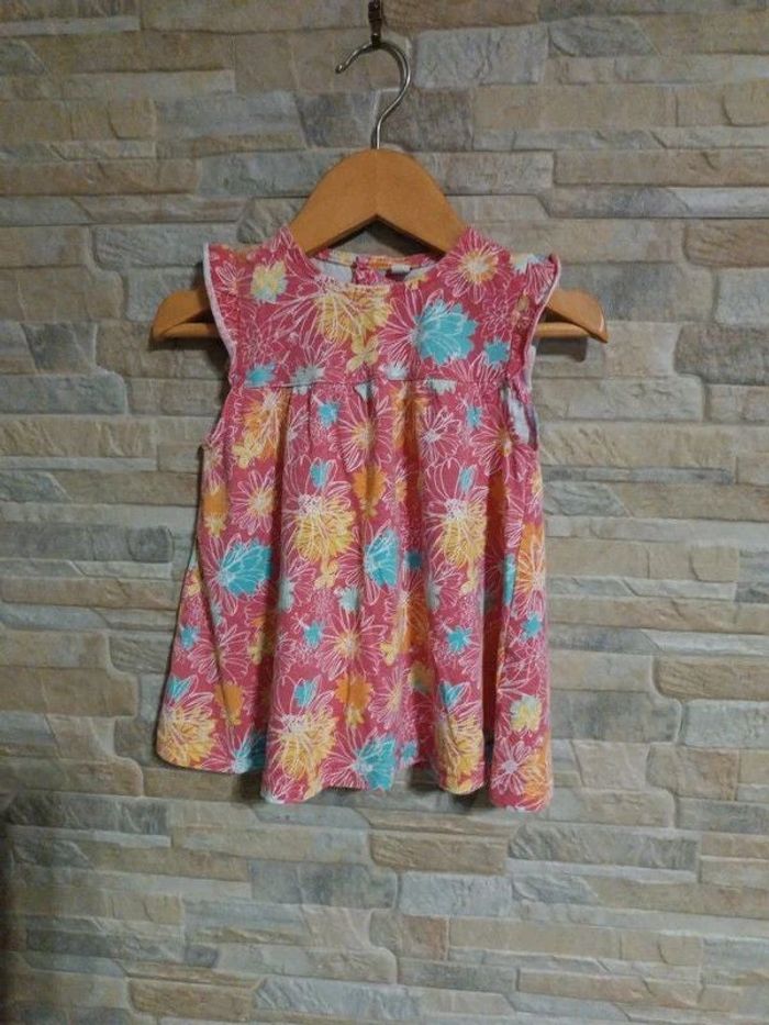 Robe rose à fleurs 18M, 60% coton, 40% polyester. TBE