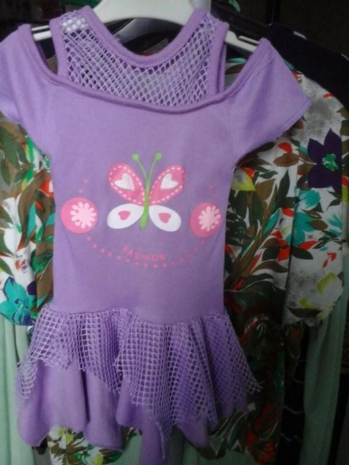 Robe lilas – Taille 24 mois – Filet épaule et jupe – Coton/polyester – Décor papillon – TBE