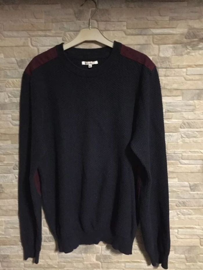 Pull marine U Collection XL, épaules 44 cm, aisselles 58 cm, longueur 66 cm, 100% coton maille nid d'abeille - TBE