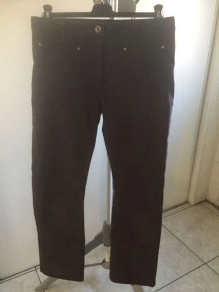 Jean velours côtelé marron, taille 42, longueur 106 cm, largeur ceinture 42 cm, 59% polyester, 38% coton , 3% élasthanne - comme neuf - TBE
