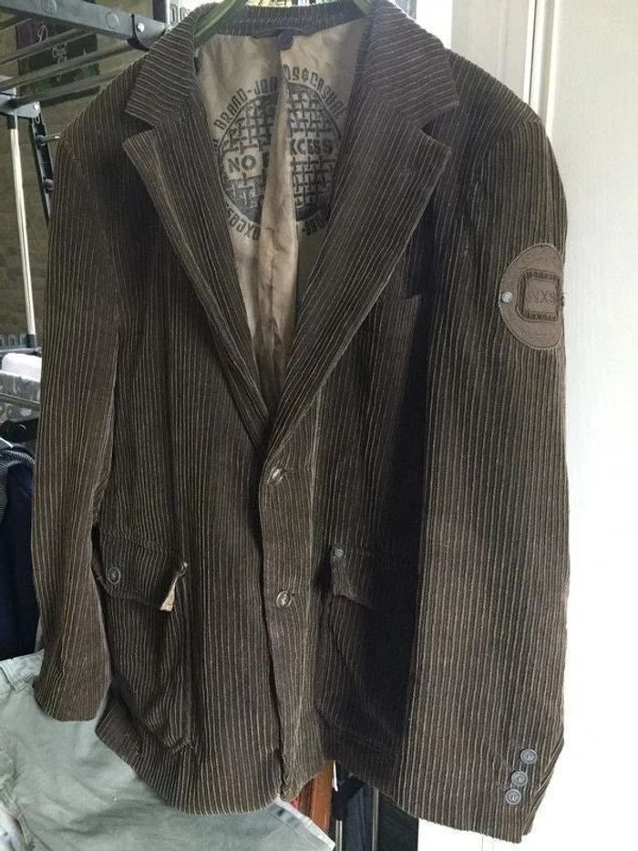 Veste velours côtelé marron No Excess, taille M, longueur 76 cm, largeur épaules 48 cm, largeur aisselles 56 cm, 2 poches avant, 1 poche poitrine, 2 poches intérieures, 100% coton, doublure impeccable 100% polyester - TBE