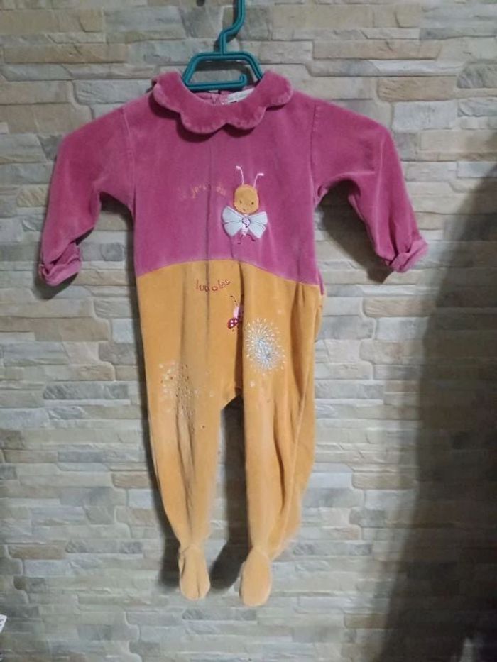 Dors bien velours In Extenso 24M, rose/moutarde, 1 pied un peu râpé, coton, polyester - Bon état