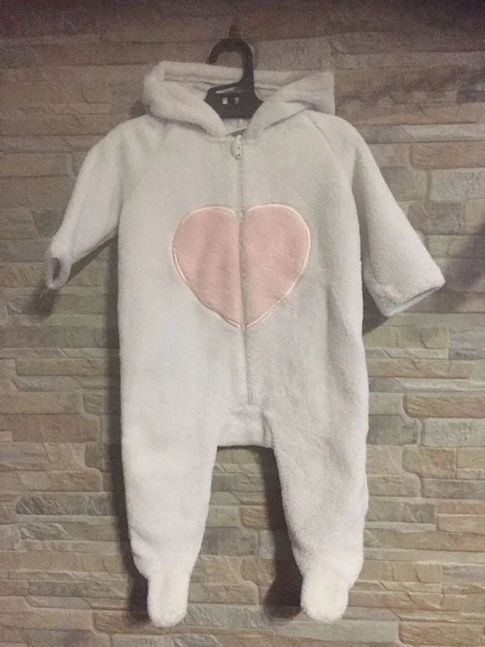 Combinaison polaire à capuche, blanc rose, Disney Baby 6M, 100% polyester - TBE