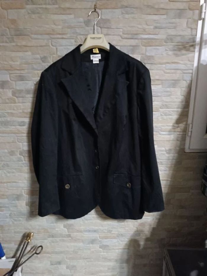 Veste costume noire Women's 52, épaules 52 cm, aisselles 70 cm, longueur 76 cm, 97% coton, 3% elasthanne - TBE