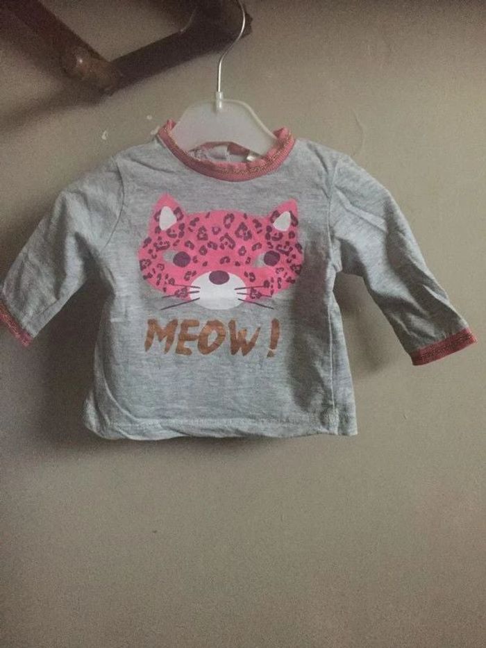 1-T-shirt gris « chat Meow » rose, Kimadi 3 mois, 100% coton 2-T-shirt blanc Bébé Rêve 3 mois, « Born to be Star », 100% coton 3-T-shirt blanc Hello Kitty 3 mois, 100% coton 4-T-shirt fuchsia Bébé Rêve 3M, 100% coton - TBE