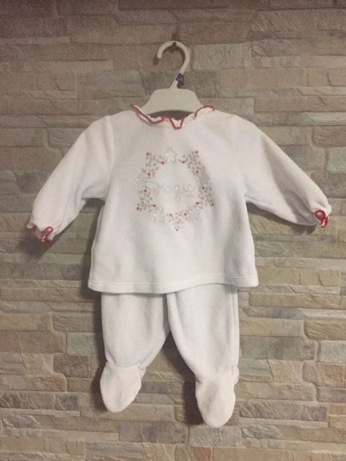 Ensemble velours blanc, brassière et pantalon Obaibi 3 mois, coton polyester - TBE