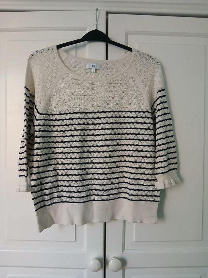 Pull-over de chez La Redoute. Marinière. Manches 3/4. Tricot ajouré. Col rond. Composition : 100% coton bio. Couleurs : noir, blanc. Taille : 40/L. Très bon état. #evivi59femme40 #evivi59femmel Prix : 4,50 euros. N'hésitez pas à consulter mes autres annonces ! Possibilité de faire un lot pour diminuer les frais d'envoi. Je vous propose également de bénéficier d'une réduction de : - 15% à partir de 2 articles achetés, - 20% à partir de 3 articles achetés, - 25% à partir de 5 articles achetés. #pull #pullover #mariniere