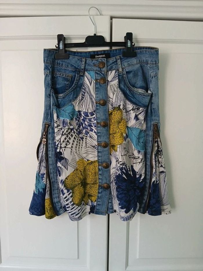 Jupe mi-longue jean & tissu multicolore 36/S - Desigual