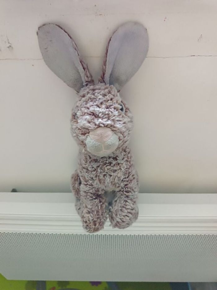 Mon lapin Gipsy, hauteur 34 cm, chiné marron/beige, 100% polyester. TBE