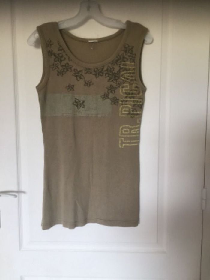 Débardeur tunique kaki - T40/42 - longueur 73 cm, aisselles 44 cm, 100% coton - TBE