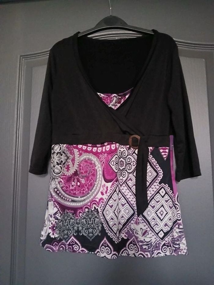 Haut de la marque In Extenso. Léger, fluide, infroissable. Assez décolleté. Manches 3/4. Couleur : noir, blanc, violet. Composition : 92% polyester, 8% élasthanne. Taille : 38/M. Comme neuf. #evivi59fille38 #evivi59fillem #evivi59femme38 #evivi59femmem #evivi59femme40 #evivi59femmel Prix : 2,50 euros. N'hésitez pas à consulter mes autres annonces ! Possibilité de faire un lot pour diminuer les frais d'envoi. Je vous propose également de bénéficier d'une réduction de : - 15% à partir de 2 articles achetés, - 20% à partir de 3 articles achetés, - 25% à partir de 5 articles achetés.