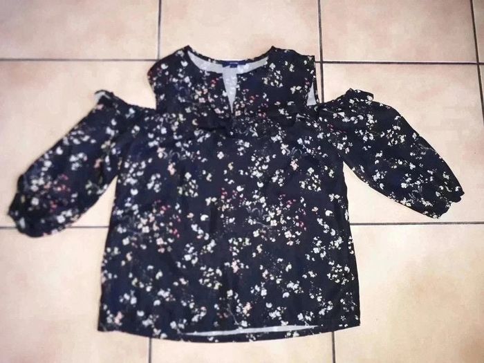 Très joli Chemisier de chez kiabi. Epaules dénudées. Couleur : noir, petites fleurs blanc & rosé & orangé. Taille : 34/XS. Très bon état général. #evivi59fille34 #evivi59fillexs #evivi59femme34 #evivi59femmexs Prix : 3,00 euros. N'hésitez pas à consulter mes autres annonces ! Possibilité de faire un lot pour diminuer les frais d'envoi. Je vous propose également de bénéficier d'une réduction de : - 15% à partir de 2 articles achetés, - 20% à partir de 3 articles achetés, - 25% à partir de 5 articles achetés.