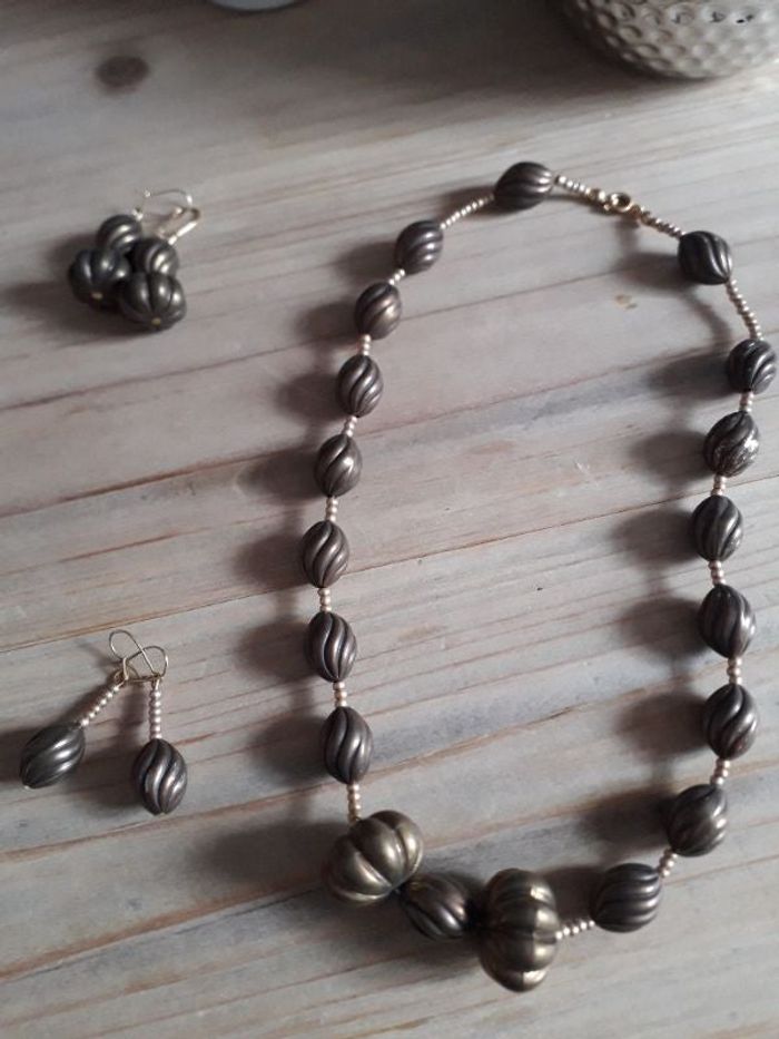 Parure collier et 2 paires de boucles d'oreilles de fabrication artisanale.