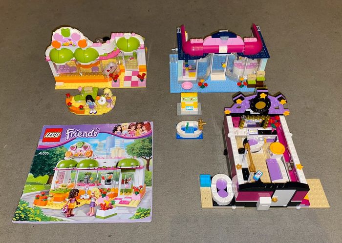 Je vends le lot de 24 Lego Friends 99€ ou : Lego 3061 : Complet, avec notice, il manque 4 pièces + 5 remplacées (10€) Lego 3063 : Complet, sans notice (9€) Lego 3183 : Complet, avec notice, il manque 3 pièces (5€) Lego 3931 : Complet, sans notice, il manque 1 pièce (4€) Lego 3936 : Complet, sans notice, il manque 2 pièces (5€) Lego 3937 : Complet, sans notice, il manque 2 pièces (5€) Lego 30105 : Complet, sans notice (3,50€) Lego 41400 : Complet, sans notice, sans perso (4€) Lego 41003 : Complet, avec notice, il manque 2 pièces (5€) Lego 41013 : Complet, avec notice, il manque 2 pièces, 4 pièces remplacées (5€) Lego 41019 : Complet, avec notice, il manque 1 pièces(3€) Lego 41042 : Complet, avec notice (3,50€) Lego 41104 : Complet, sans notice, il manque une dizaine de pièces (5€) Lego 41007 : Complet, sans notice, sans perso , il manque 5 pièces (9€) Lego 41035 : Complet, avec notice, il manque 4 pièces (10€) Lego 41098 : Complet, sans notice (5€) Lego 41306 : Complet, avec notice, il manque 3 pièces (4€) Lego 41333 : Complet, avec notice, il manque 1 pièce (8€) Lego 41342 : Complet, avec notice, il manque 3 pièces (5€) Lego 41346 : Complet, avec notice, seulement l’appareil photo, il manque 2 pièces + 1 remplacer (5€) Lego 41442 : Complet, sans notice, il manque 4 pièces (4€) - Lego 41677 : NEUF (7€) Lego 41,695 : Complet, avec boîte et notice (10€) Lego 561603 : Complet, sans notice (2€)