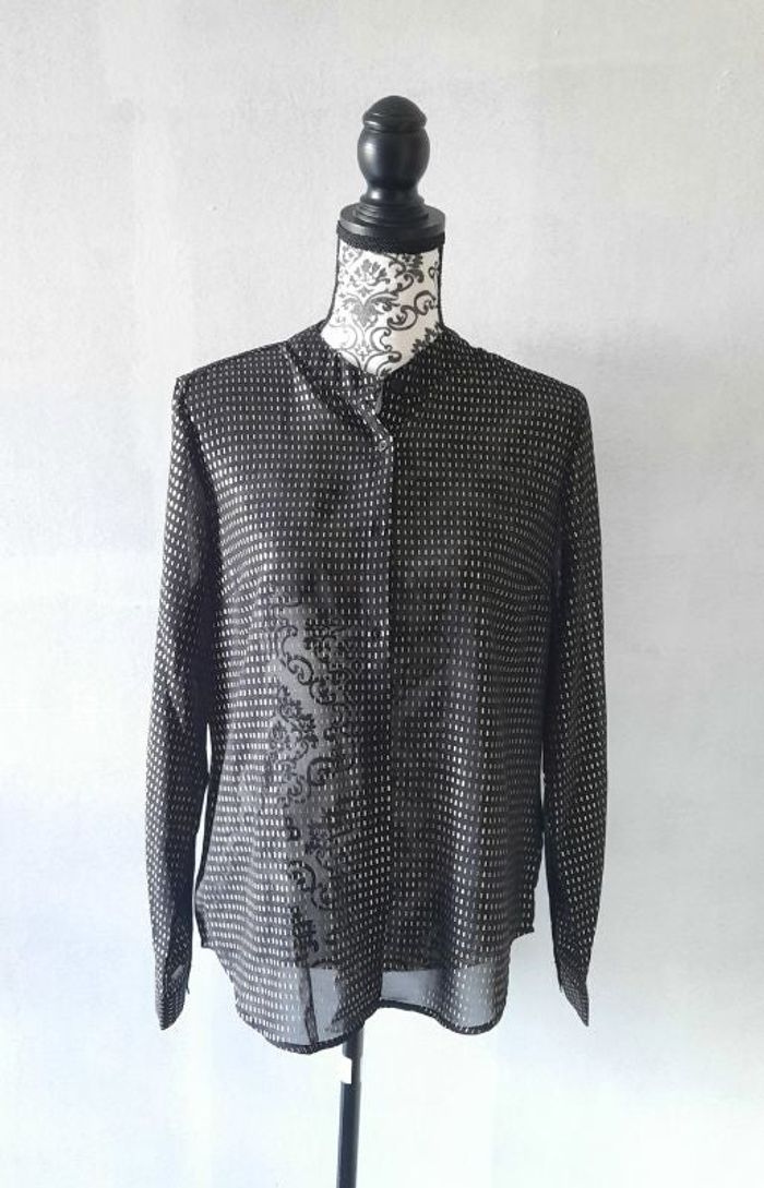 🌸dressing trié par # #didine91017femme40 Magnifique chemise en voile noir et doré Plus l'étiquette de la composition des matières Légèrement transparente Taille 40 En excellent état