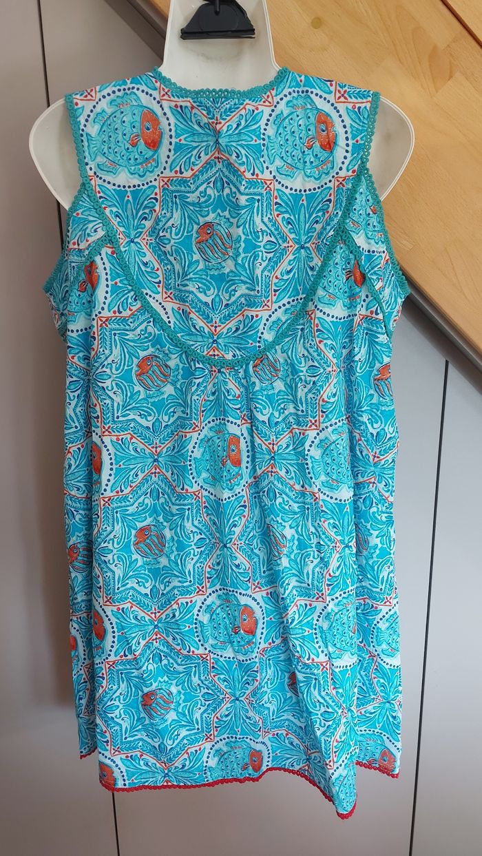 Robe sans manches, doublée, bleue et corail Moda Posa Taille M Neuve avec étiquette