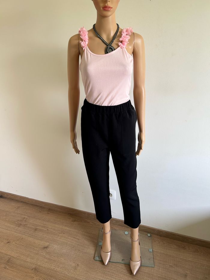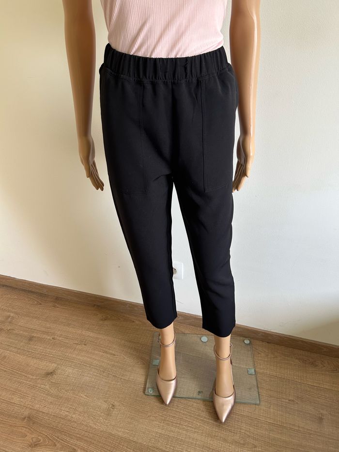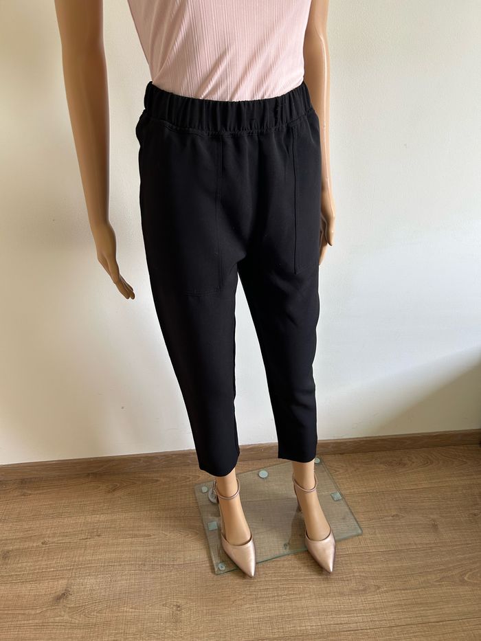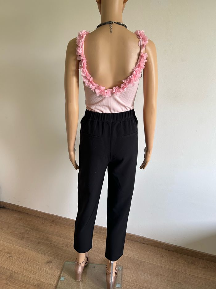 Joli pantalon noir large pour femme, de marque Teddy Smith. Taille S. Porté plusieurs fois, en très bon état. Il manque juste le cordon au niveau de la taille. taille 34 cms à 44 cms longueur 91 cms longueur entrejambes 64 cms La taille est extensible 89% polyester et 11% elasthanne