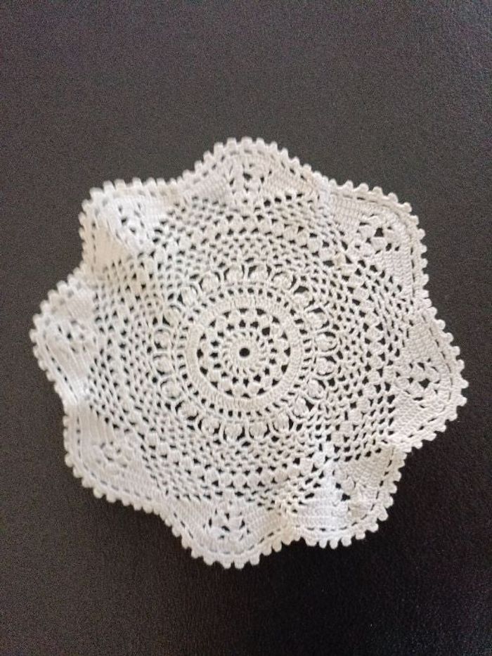 Jolie napperon crocheté Diamètre 17 cm Quantité disponible 7 Prix d'un napperon 1,25 € ***************************