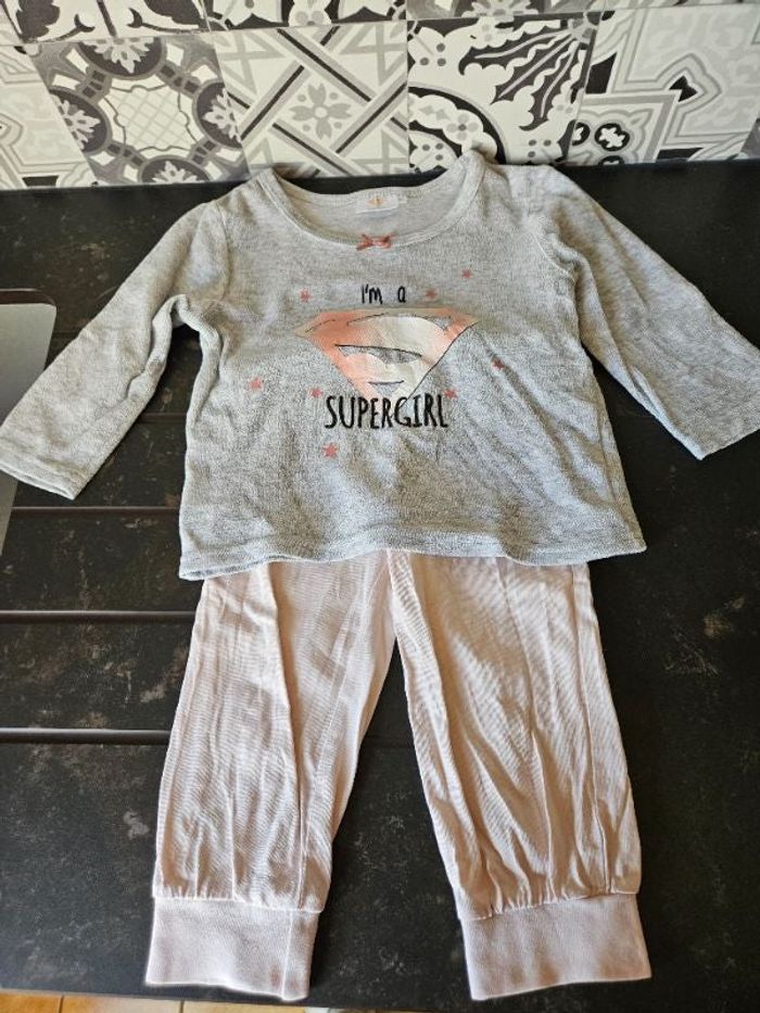 Pyjama super girl en très bon état Couleur gris et rose clair