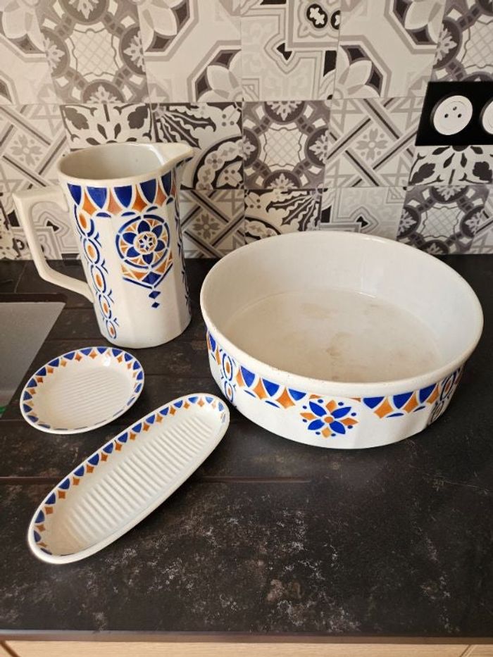 Service à toilette en très bon état Sur la cuvette 1 à 2 eclats dû à l usure