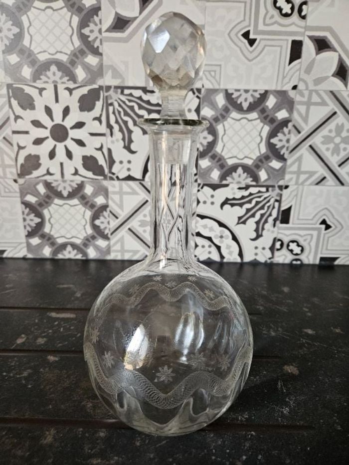 Carafe en cristal gravée avec bouchon Très ancienne Possibilité d en avoir 2 identiques