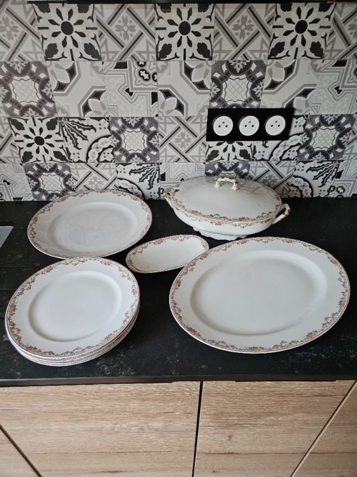 Service en faïence aux lions de faïence rue de rivoli 90 Paris Patented Exceptionnel 4 assiettes plates 25 cm 1 plat oval 42 cm 1 plat rond 34 cm 1ravier 21 cm 1 soupière avec anses 36 cm