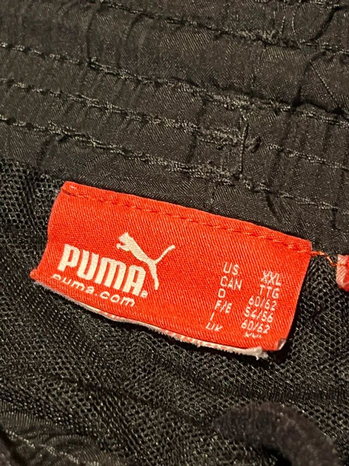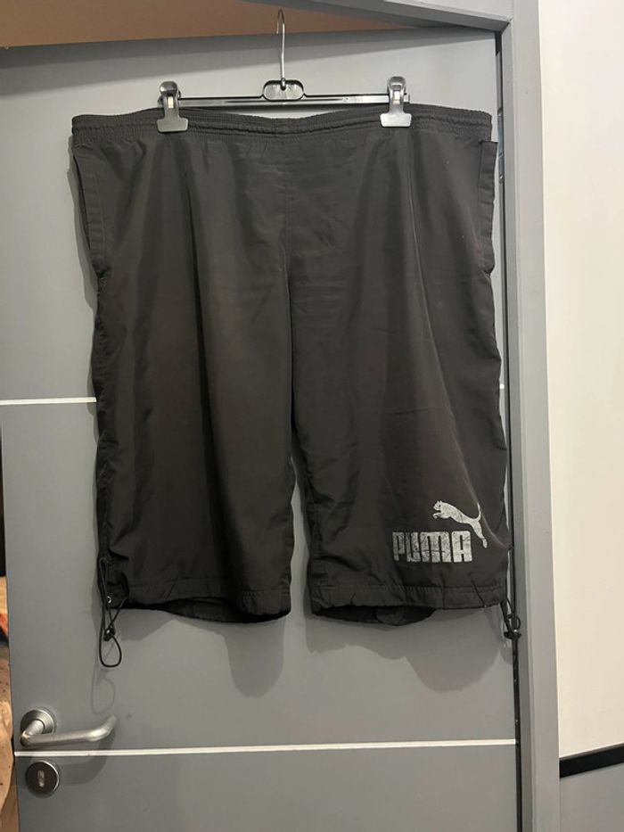 Short pour homme Marque Puma Taille 54/56 Coloris noir Deux petits défauts: - petit trou d’environ 1mm à l’avant au dessus du logo Puma (avant dernière photo) - couture intérieure de la doublure décousue (dernière photo)