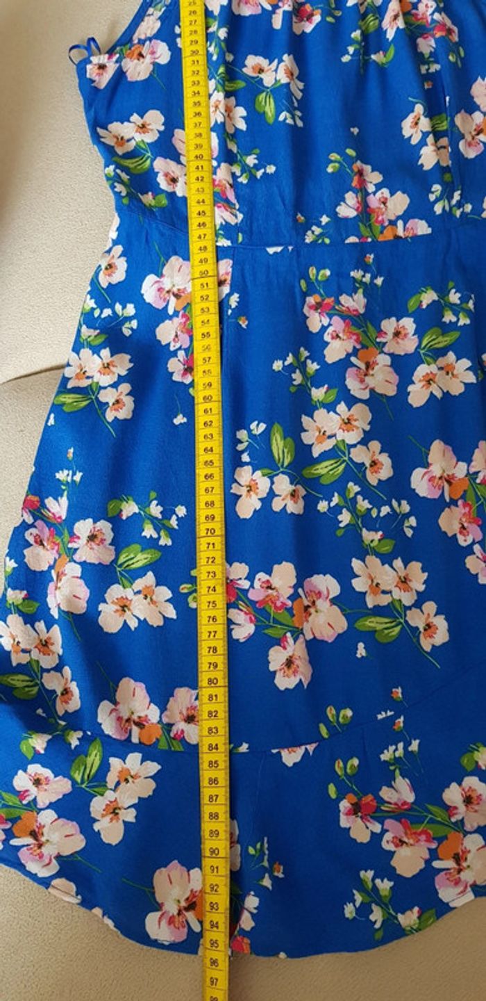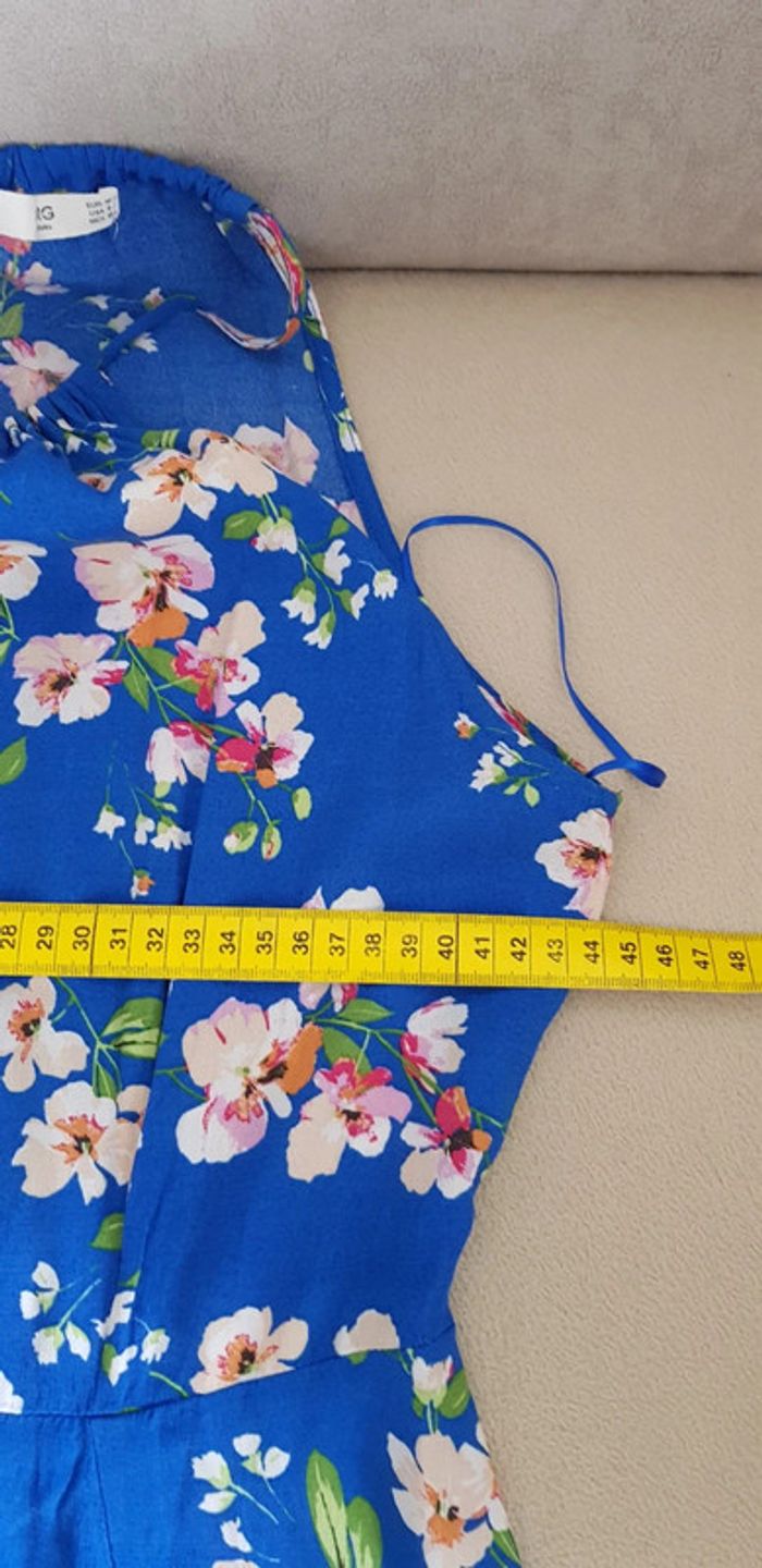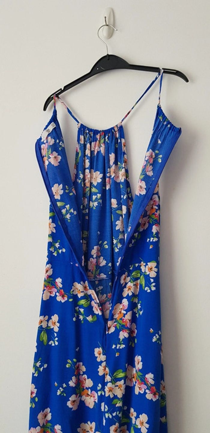 Robe légère bleue aux motifs floraux et aux fines bretelles faisant le tour du col de la robe, fermeture zippée dans le dos - T. 38 - TRÈS BON ÉTAT COMME NEUVE. #alupinerobejupefemmetaille38 #robefemme38 #robelegerefemme38 #robebretellesfemme38 #robeetefemme38 #robemngfemme38 #robemangofemme38 #robelegeremngfemme38 #robelegeremangofemme38 #robeetemngfemme38 #robeetemangofemme38 #mngfemme38 #mangofemme38 #mng #mango