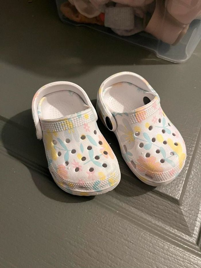 Vends sabots blancs avec des fleurs, provenant du magasin Chaussea, en taille 18. 🛍 N’hésitez pas à me contacter pour plus de renseignements, ou de photos. 📸 Bonne visite, à bientôt ! 🌸