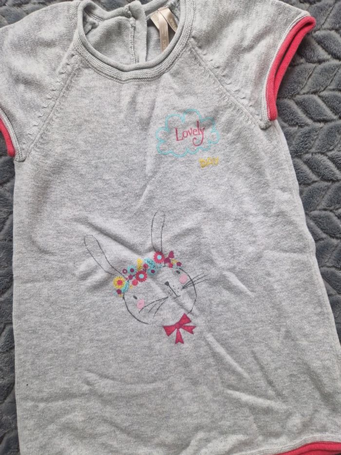 Robe à manches courtes Gris avec motif lapin 🐰 En très bon état Déjà porté donc peut présenter des signes d'usure Photos prises en intérieur Orchestra 18 mois #lucie_671_18mois #lucie_671_robe