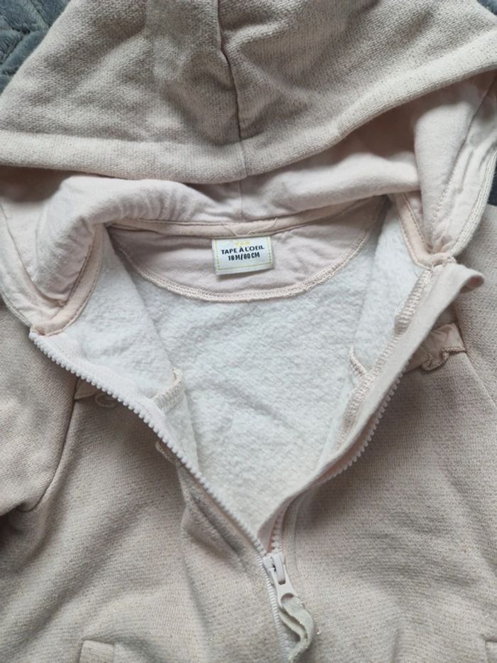 Gilet légèrement molletonné à l'intérieur Fermeture à tirette En très bon état malgré une tache au niveau de la capuche. Déjà été porté donc peut présenter des signes d'usure Tape à l'œil 18 mois #lucie_671_18mois #lucie_671_gilet