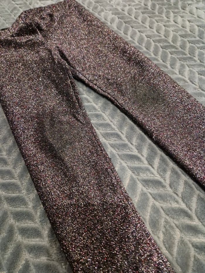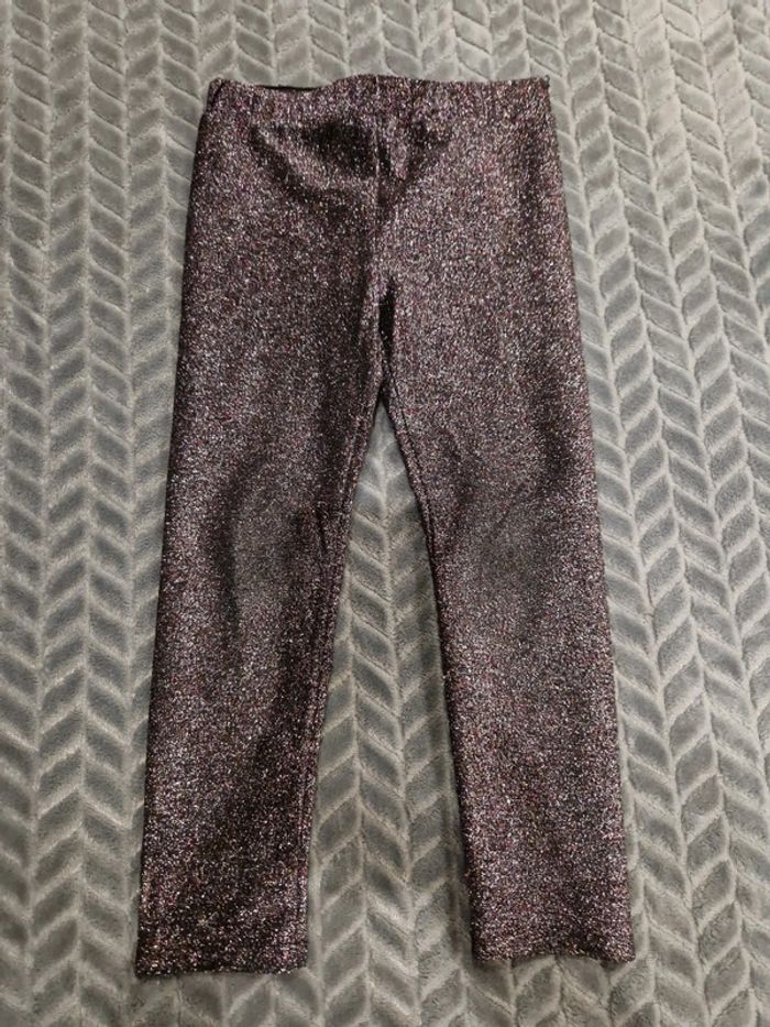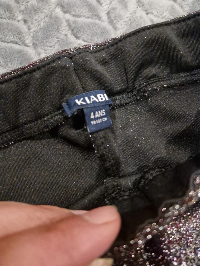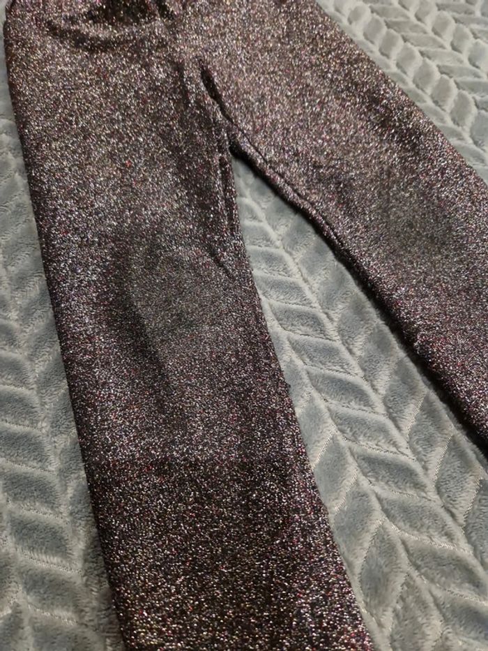 Legging noir à paillettes Reflets violet & argent Usure au niveau des genoux Kiabi 4 ans #lucie_671_4ans #lucie_671_legging