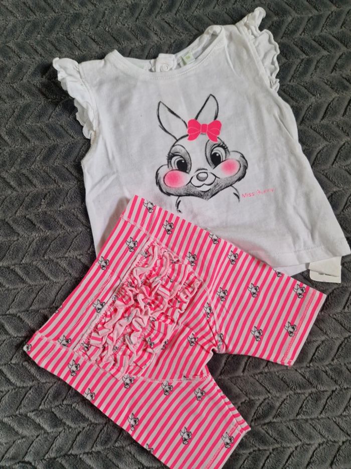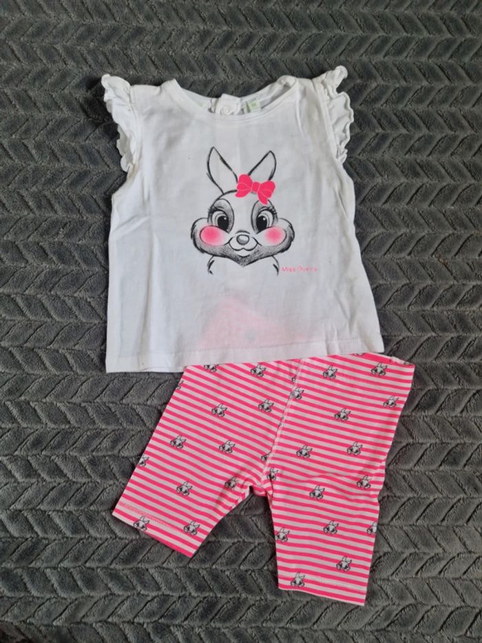 Ensemble comprenant : _ Un débardeur blanc Motif Lapin 🐰 _ Miss Bunny _ Un legging assorti rayé blanc et rose fluo Détail "froufrou" aux fesses En excellent état Kiabi 6 mois #lucie_671_6mois #lucie_671_lot #lucie_671_ensemble #lucie_671_tshirt #lucie_671_legging