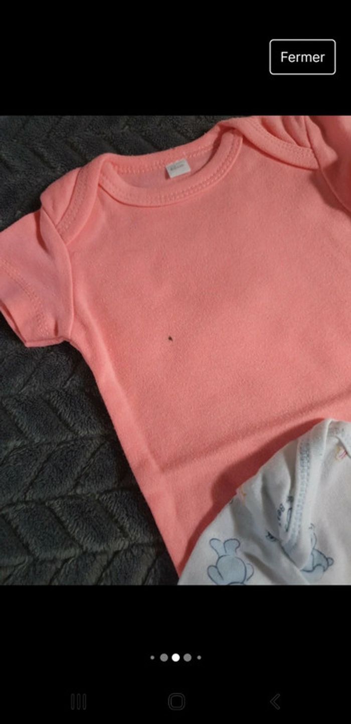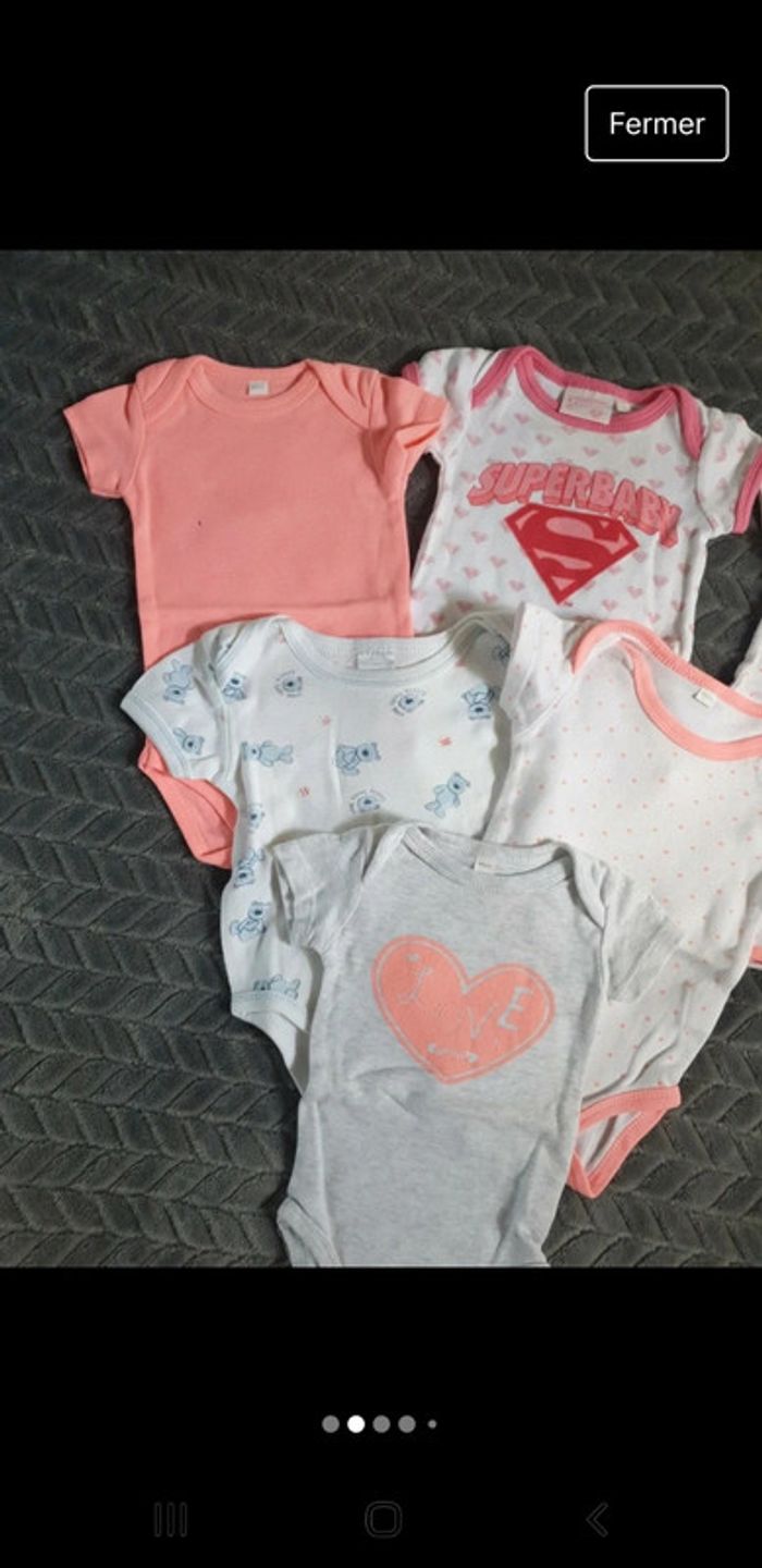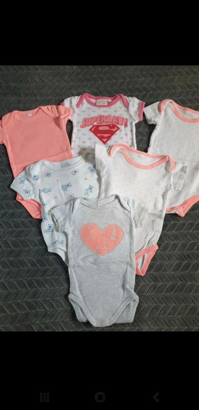 Lot de 6 bodies à manches courtes Différents motifs _ Ourson, Coeur ❤ "love", pois, "Superbaby" ... En excellent état Juste le uni rose fluo qui a une tâche de feutre (cf photo) In Extenso 6 mois _ 68 cm #lucie_671_6mois #lucie_671_lot #lucie_671_body