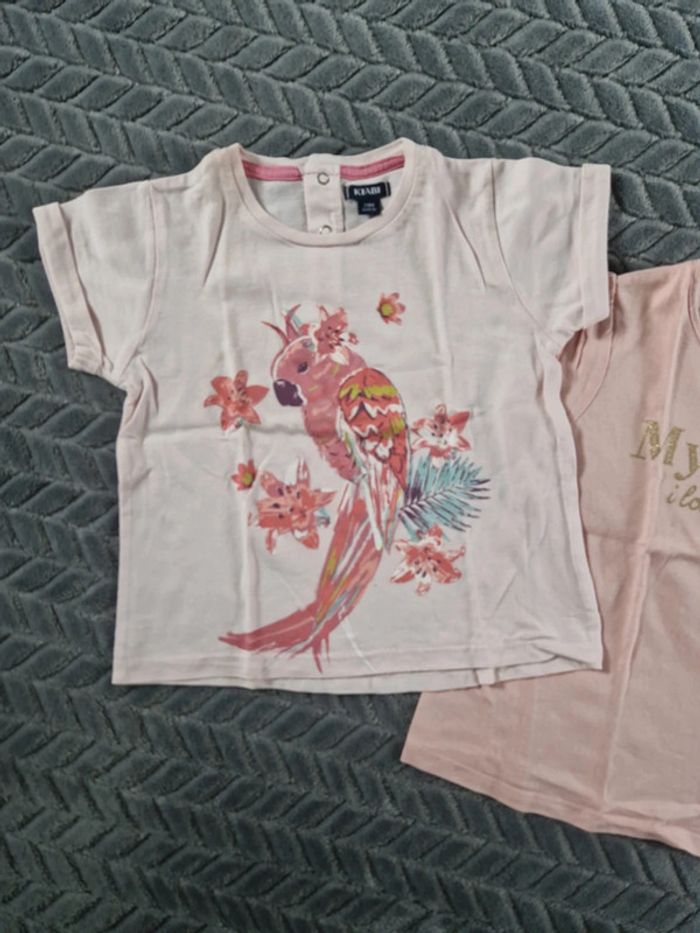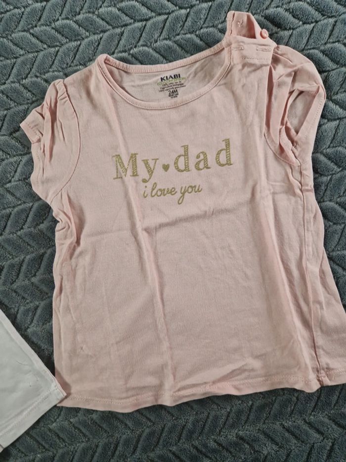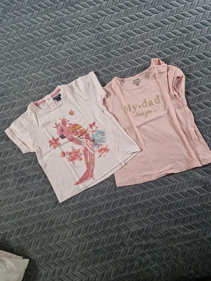 Lot de 2 t-shirts _ un rose Motif perroquet Fermeture à pression à l'arrière _ un rose "my dad I love you" Fermeture à boutonner aux épaules En parfait état Kiabi 24 mois #lucie_671_24mois_2ans #lucie_671_lot #lucie_671_tshirt