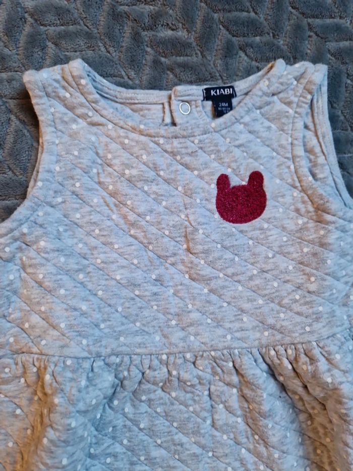 Robe manches courtes Grise à pois blanc motif lapin rose à paillettes 🐰 Assez épaisse. Peut être portée avec un sous pull En excellent état Kiabi 24 mois #lucie_671_24mois_2ans #lucie_671_robe