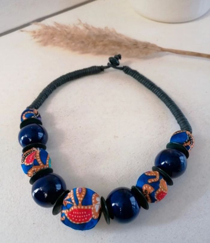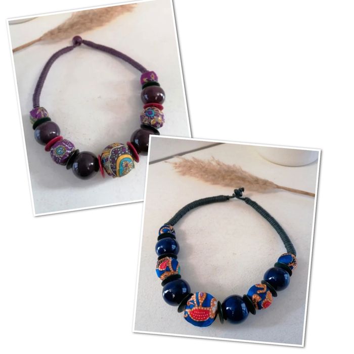 Lot de 2 colliers boules bordeaux et bleu - photo numéro 1