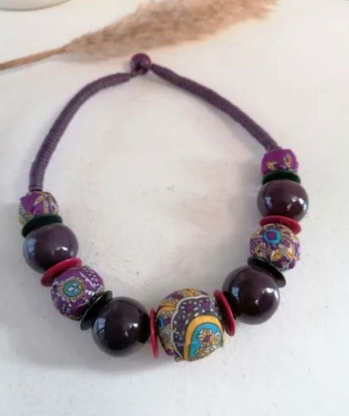 Lot de 2 colliers boules bordeaux et bleu - photo numéro 2