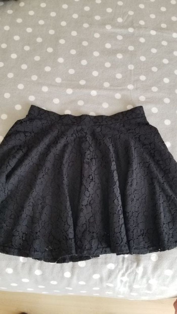 Jupe patineuse en dentelle noire. Longueur totale 43cm. Doublée