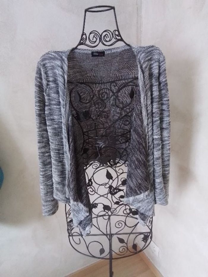 Gilet asymétrique gris chiné, 100% coton. Taille unique mais correspond plus à un 38