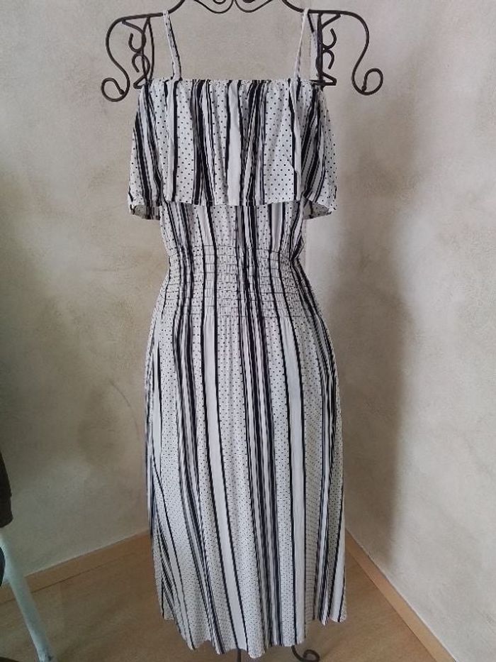 Robe à bretelles réglables. Fond blanc cassé et noire