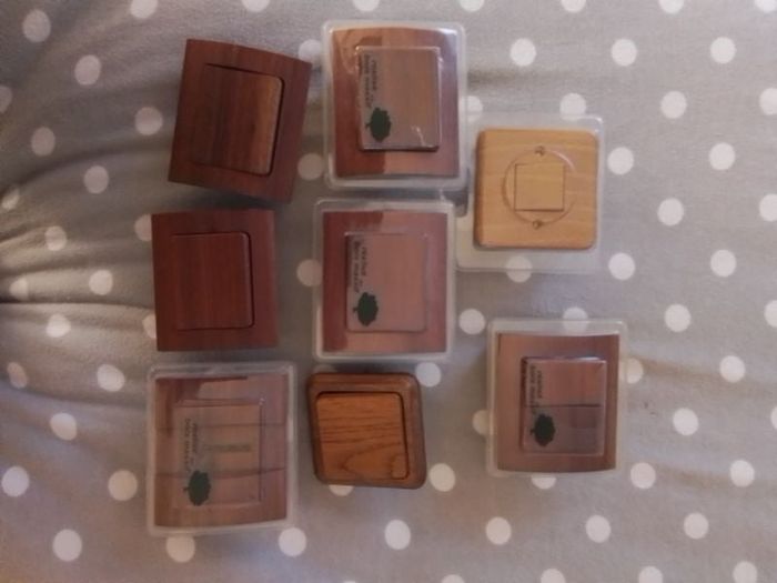 8 prises murales en bois massif. Certaines sont encore emballées.