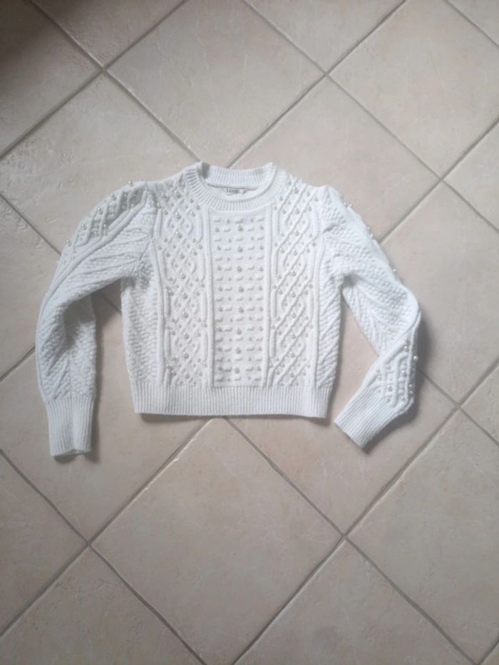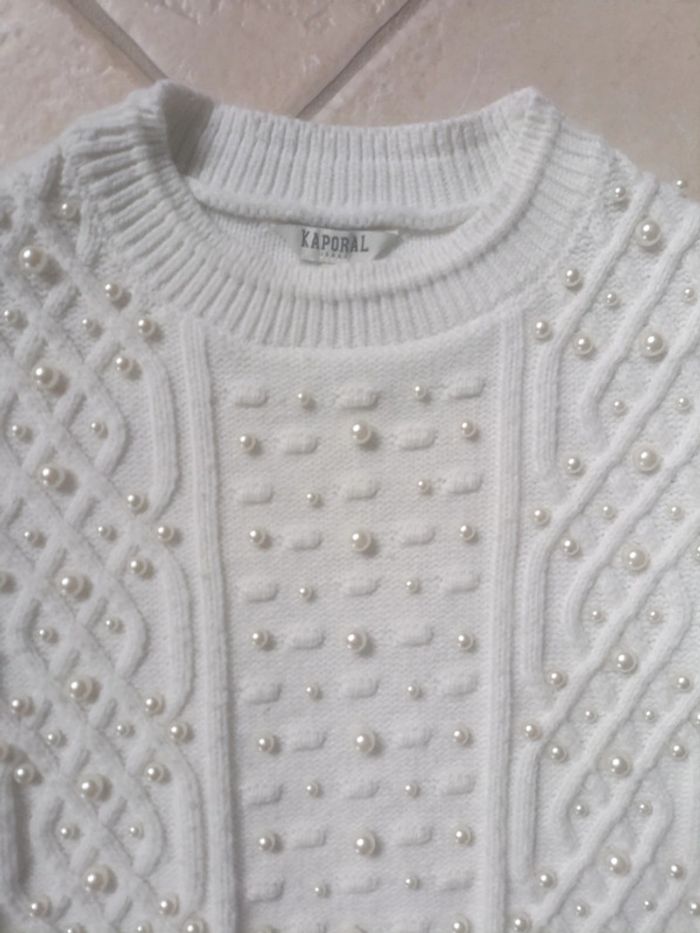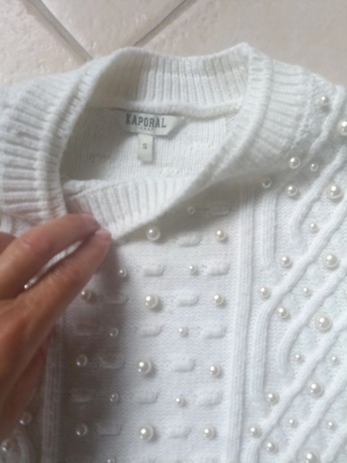 Pull Kaporal femme avec perles blanches . En très bon état. Taille S