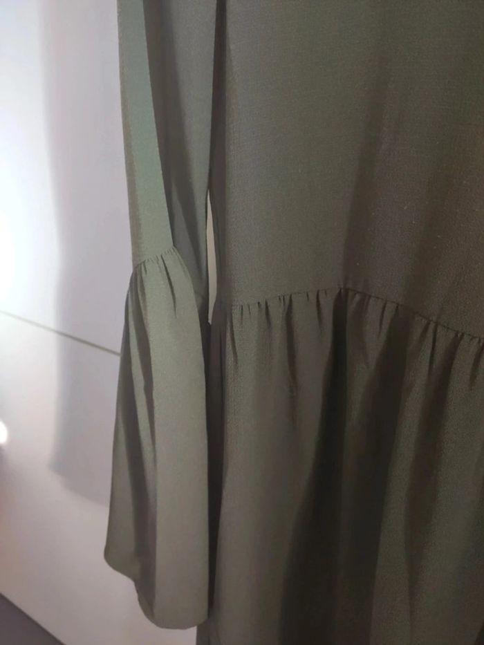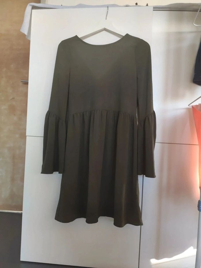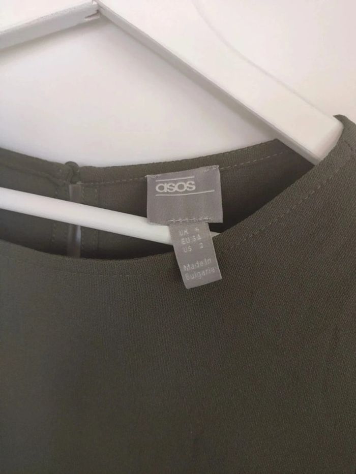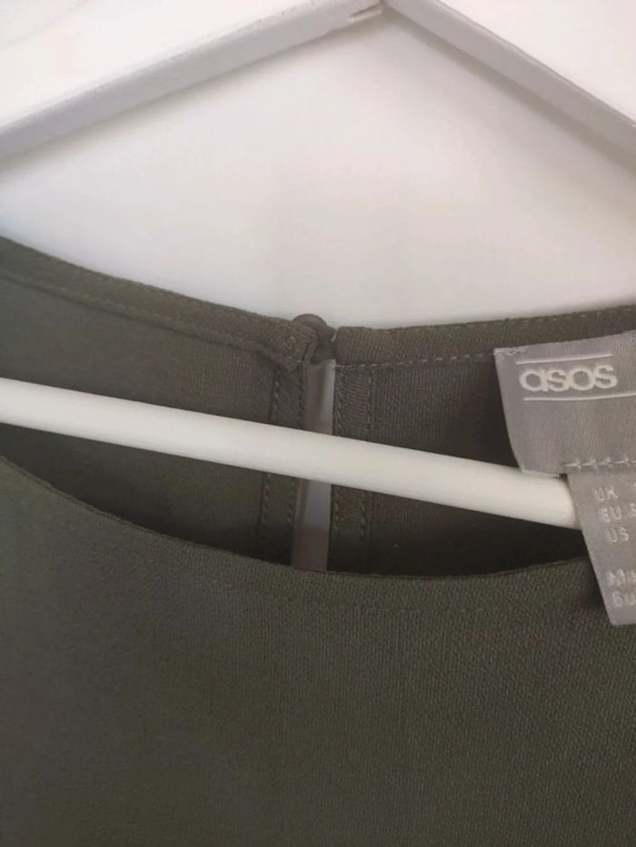 Jolie robe / tunique dans une matière style crêpe, légère et élégante, parfaite avec une ceinture. Longueur totale de la robe du col jusqu'en bas 89 cm. Fronces à la taille et aux bras, très jolie portée. Taille 34 #vulariFemmesXS34 #vulariAsos