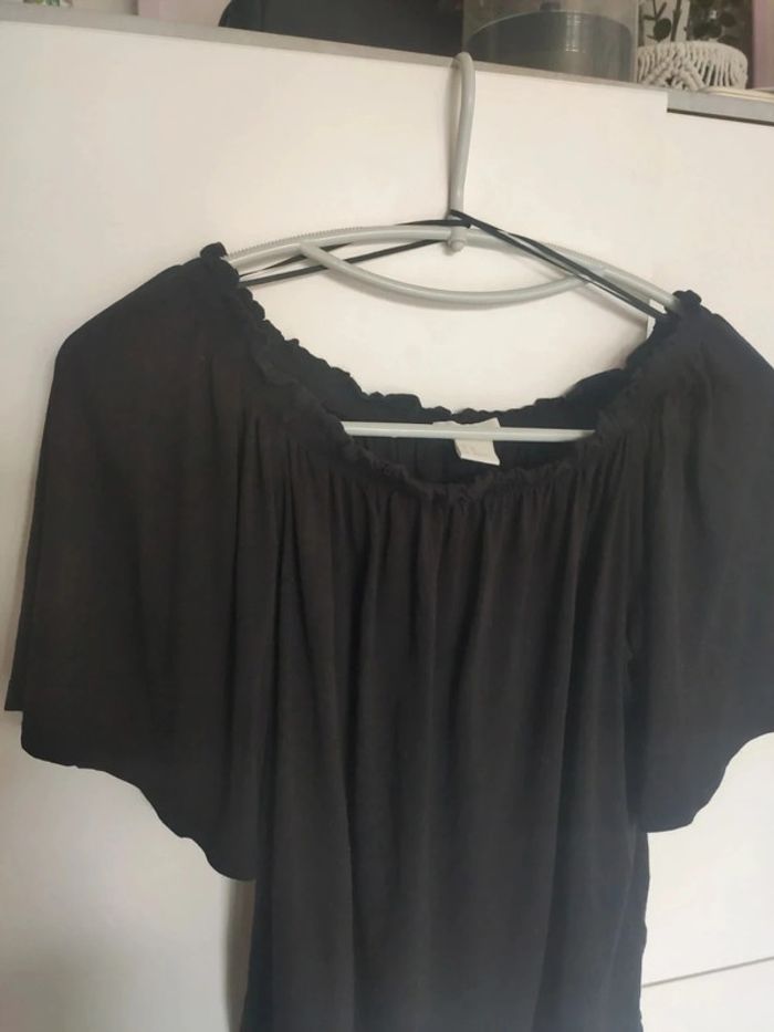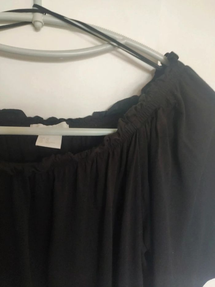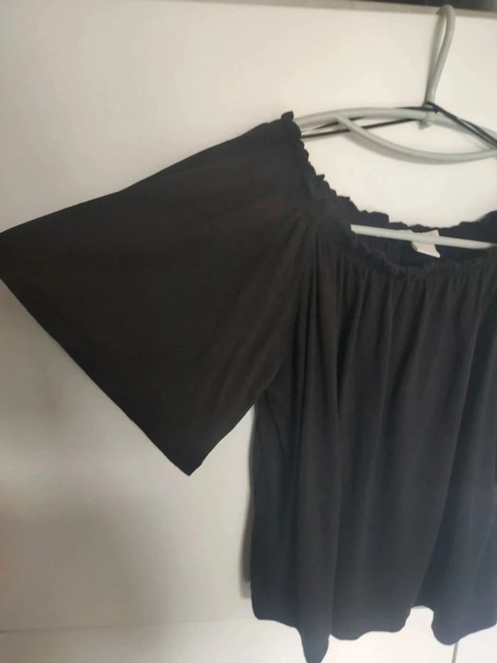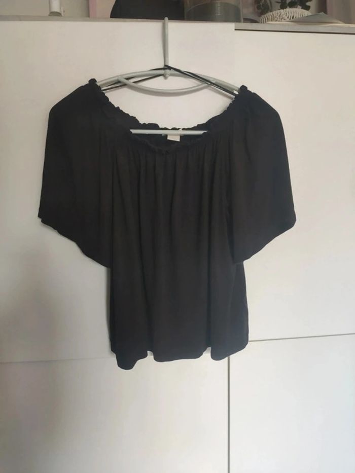 Tunique t shirt avec col élastique, peut se porter sur les épaules, ça en fait un top épaules dénudées. Manches larges papillons, assez élégant. Très bon état, très noir, taille XS, acheté à H&M #vulariFemmesXS34 #vulariHetM