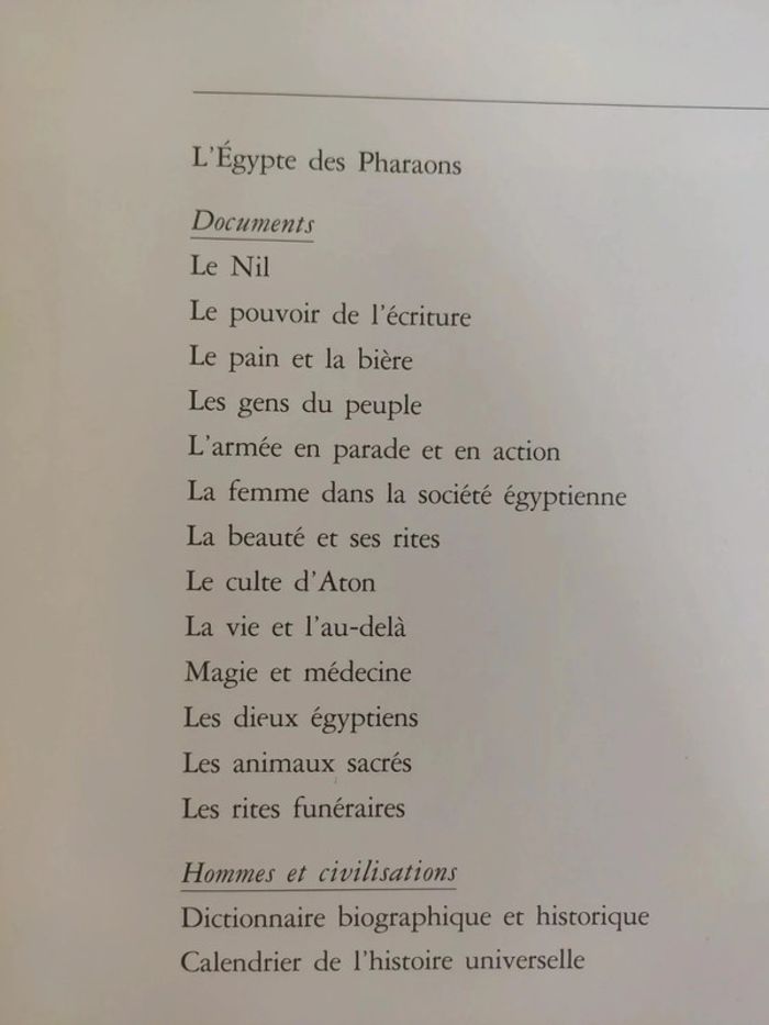 Grand livre consacré à l'Égypte des pharaons dans la collection les grands empires de Robert Laffont. Je mets en photo le sommaire. Environ 120 pages avec énormément d'illustrations. Les pages intérieures sont en très bon état mais la couverture est un peu abîmée sur les côtés #vulariLivres