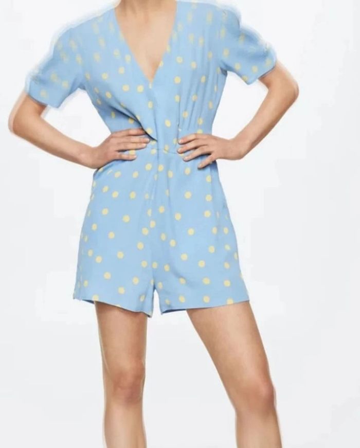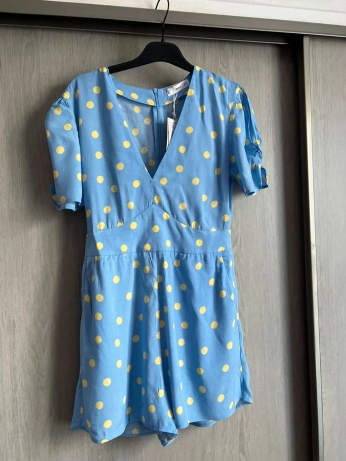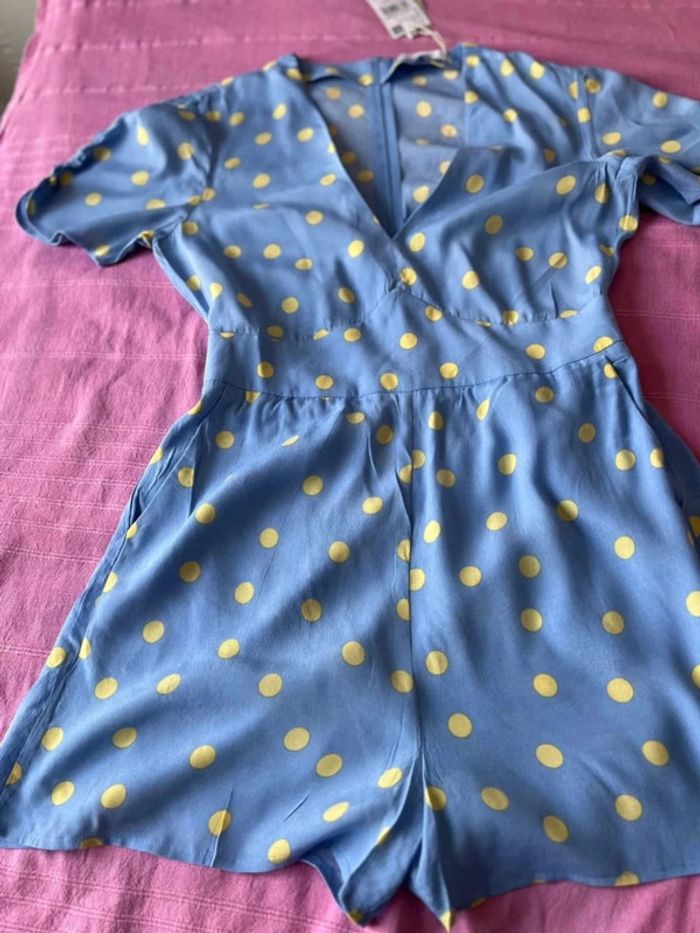 Combinaison imprimée, fluide, avec des poches.Manches courtes froncées , col en V.