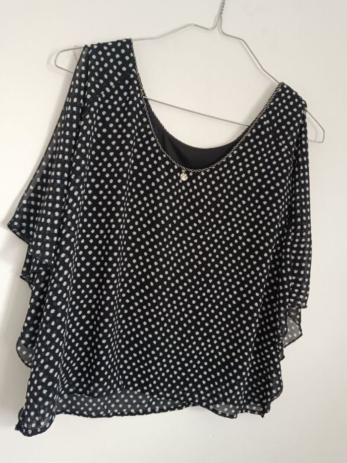 très fluide, polyester, doublé, très agréable et très chic à porter (sur jupe/pantalon/legging blanc par ex) T2 : je l'ai porté en faisant un 38