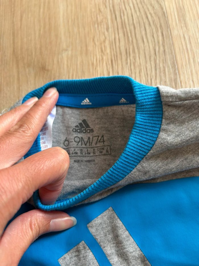 Ensemble short bébé adidas 12 mois. Léger trou à une manche mais reste en très bon état sinon. #ensemblebebeshort #ensemblebebe12mois #ensembleadidas12mois #bebe12mois #adidas12mois